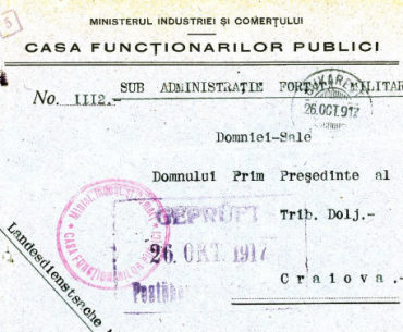 Un domeniu mai puțin prezent în preocupările filateliștilor este corespondența oficială din timpul ocupației germane în anii Primului Război Mondial. Acest subiect se întâlnește rar în colecții și nici literatura filatelică nu este generoasă în această privință.