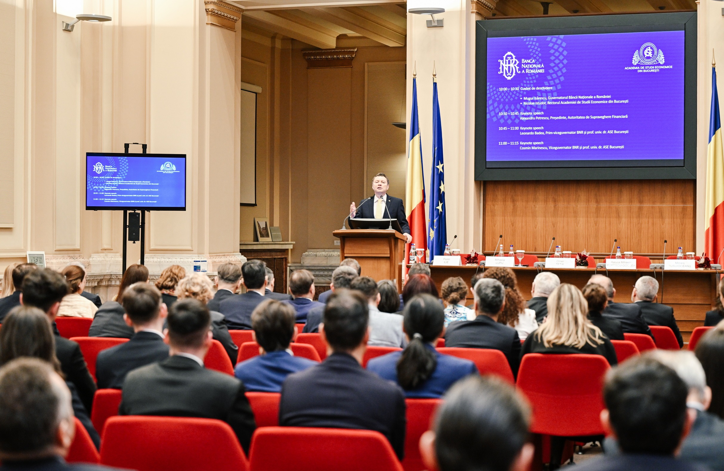 Îmi face o deosebită plăcere să vă urez și eu bun venit, în acest tandem firesc, natural, în care Banca Națională a României este alături de Academia de Studii Economice, ca furnizor de capital uman și partener în susținerea educației financiare. Aș invoca aici și o solidaritate de breaslă, care cultivă ambițiile constructive ale profesiei noastre.