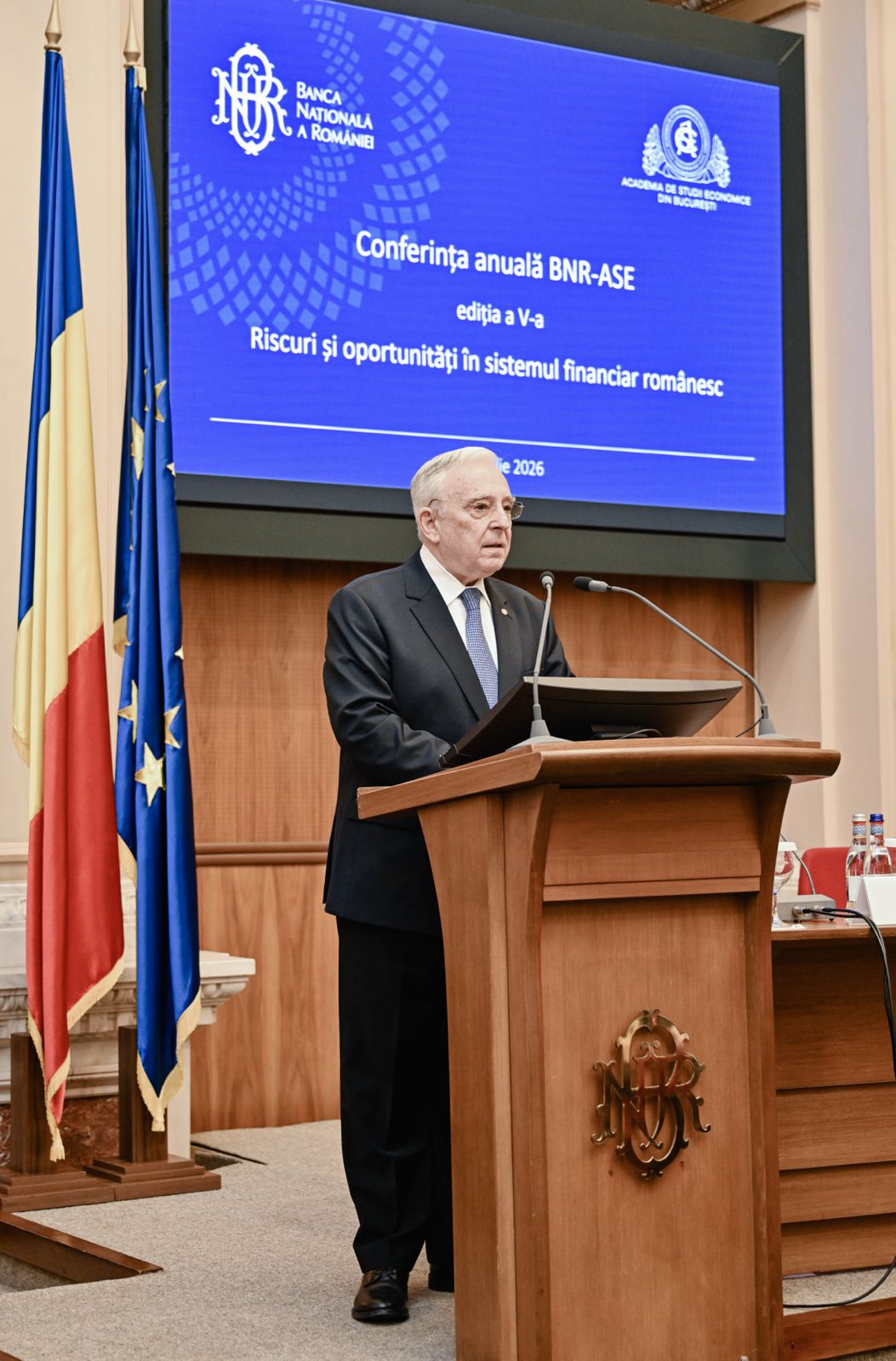 Mi-a făcut plăcere să transmit un mesaj de bun venit în deschiderea conferinței anuale BNR – ASE, un tandem firesc de colaborare academică, bazat pe solidaritate profesională și pe ambițiile constructive ale profesiei de economist. În mesajul meu de la bilaterala BNR – ASE, am dorit să lansez câteva idei despre importanța sporită pe care merită să o capete școala românească de economie, insistând pe ideea că economiștii trebuie să aibă un rol mult mai activ în ecuația deciziilor și a dezvoltării României.
